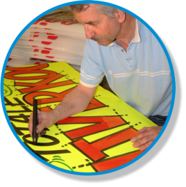bijvoorbeeld muurschilderingen, bordenbeschildering,